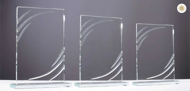 Skleněná trofej s laserovým gravírováním zdarma, 3 velikosti.