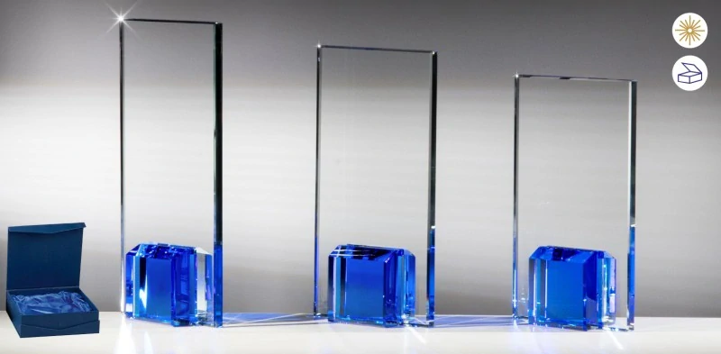Skleněná trofej s laserovým gravírováním zdarma v dárkové krabičce, 3 velikosti.