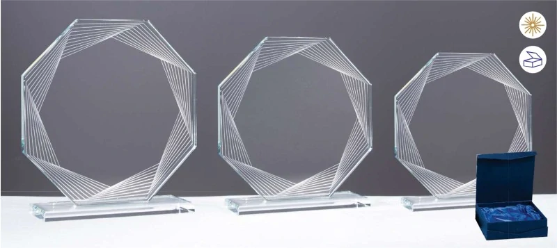 Skleněná trofej v dárkové krabičce s laserovým gravírováním zdarma, 3 velikosti.