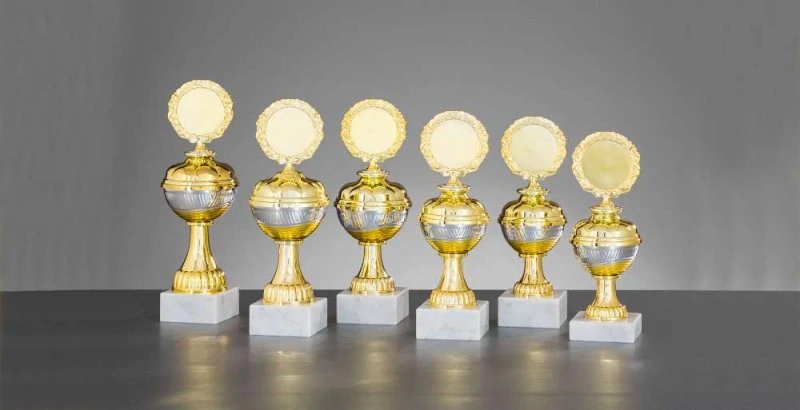 Sportovní poháry s poklicí s možností emblému, 6 velikostí.